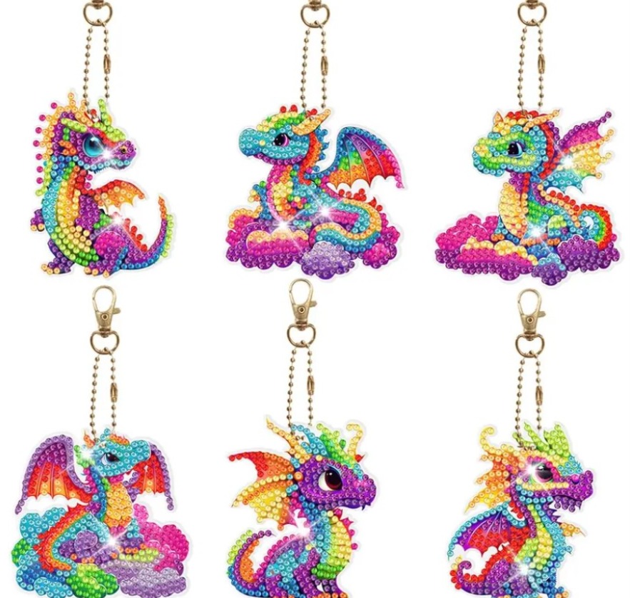 Il nostro diamond painting Portachiavi Draghi Multicolor è composto da un set di 6 portachiavi di differenti forme e di varie colorazioni. Viene fornito di kit completo di lavoro per la realizzazione.