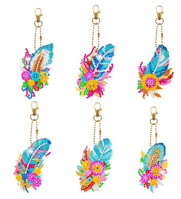 Il nostro diamond painting Portachiavi Piume è composto da un set di 6 portachiavi di differenti forme e di varie colorazioni. Viene fornito di kit completo di lavoro per la realizzazione.