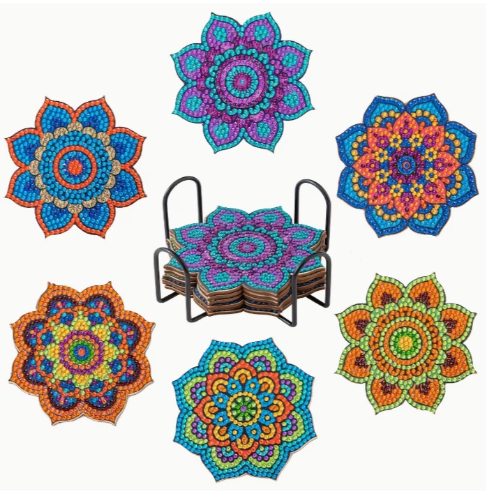 I nostri diamond painting sottobicchieri mandala sagomato sono scintillanti e colorati per arricchire la vostra tavola di un atmosfera calda e avvolgente.